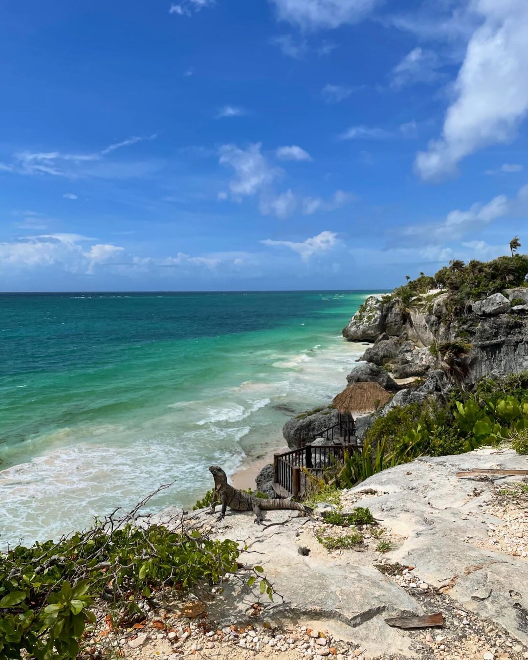 Tulum is one of the few Mayan cities built along the coast. Its strategic location on a cliff provided excellent views and protection from potential invasions from the Caribbean Sea.