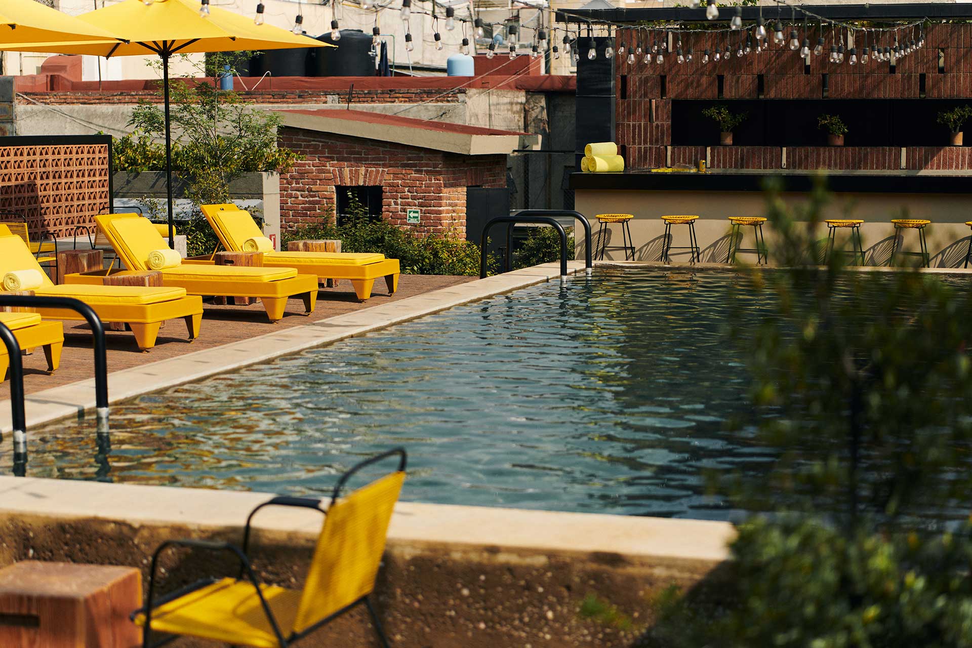 Relax on the chic rooftop terrace, complete with a pool and bar, offering breathtaking views of Mexico City's historic center, including the Metropolitan Cathedral and Torre Latinoamericana.