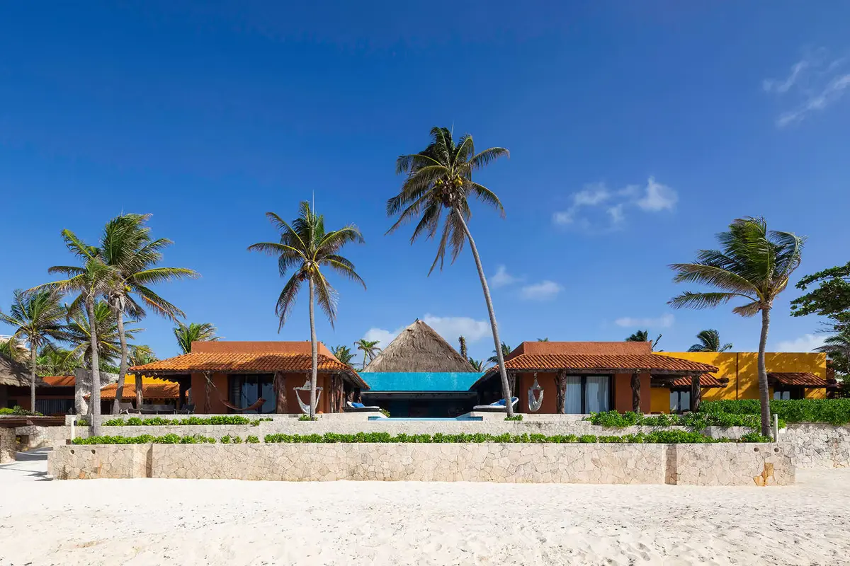 Casa Corazón is located right on the beach, offering direct access to the white sands and crystal-clear waters of the Caribbean Sea, providing stunning ocean views and a tranquil atmosphere.