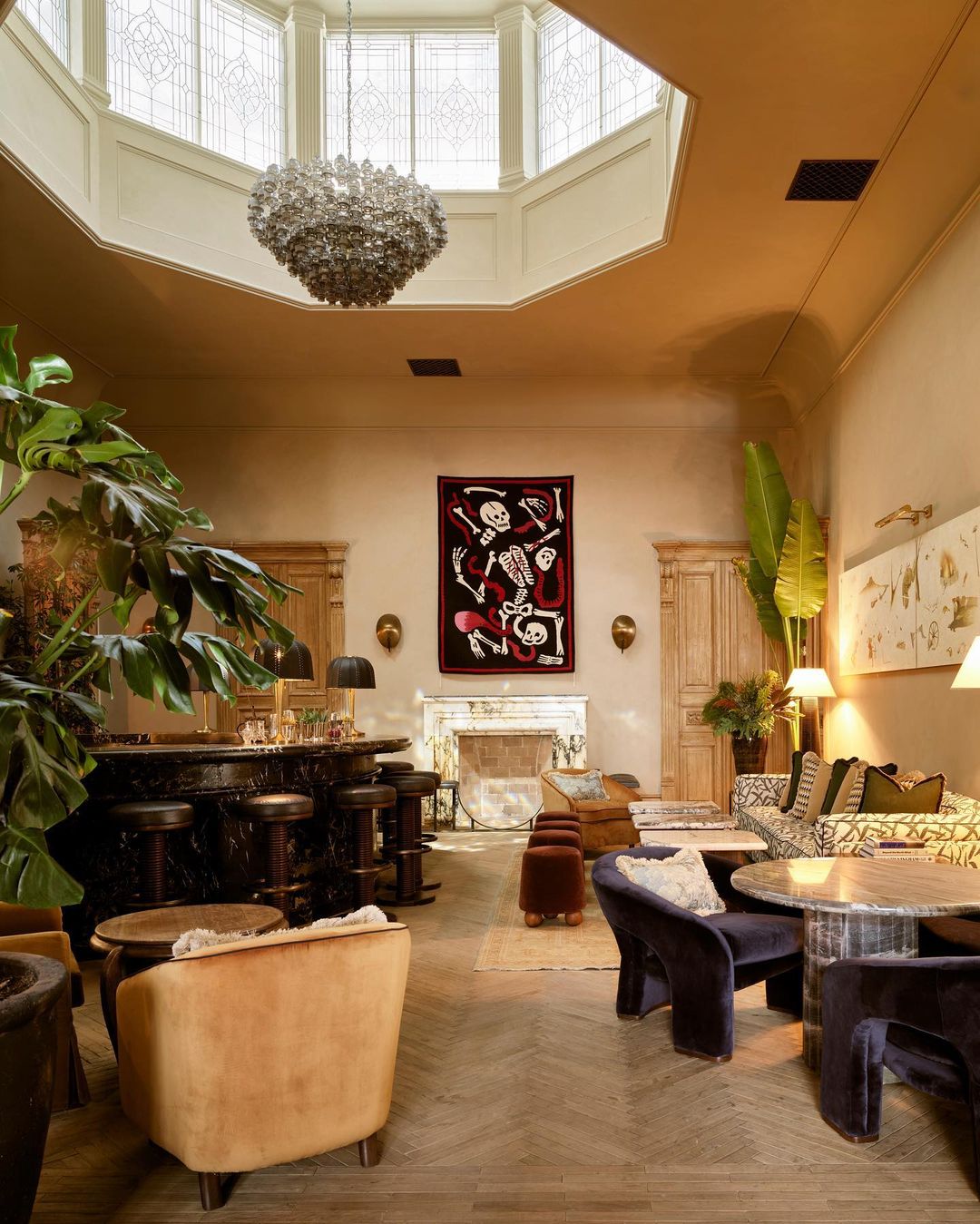 The building that houses Soho House CDMX perfectly reflects the brand's philosophy: a fusion of local history and contemporary design. Set in a restored historic building, the club's interior is decorated with an eclectic style that blends traditional Mexican elements with modern design furniture, contemporary artwork, and vintage touches, creating a warm and welcoming ambiance.